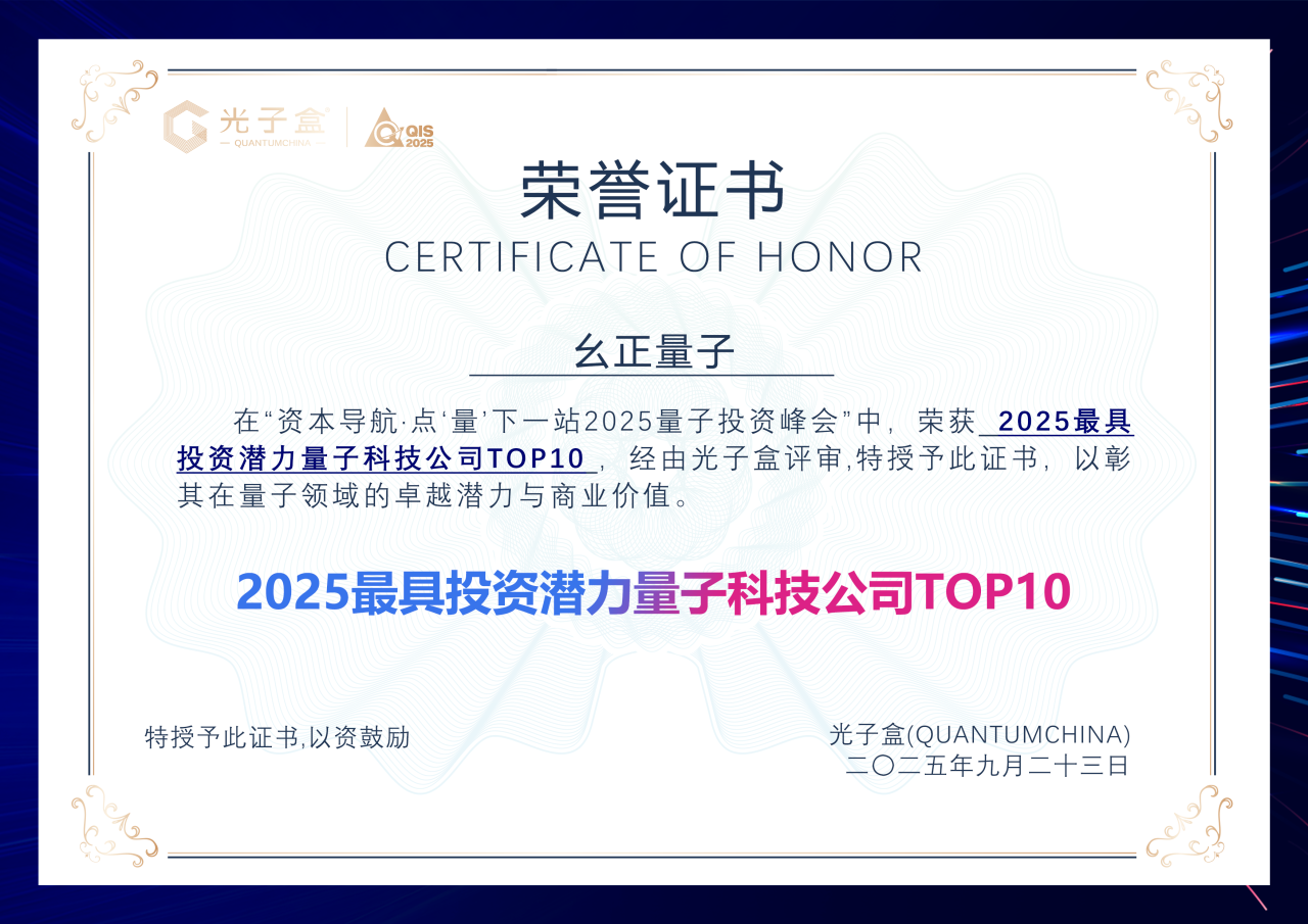 在2025量子投资峰会上,幺正量子凭借量子计算领域的技术突破与产业化成果,入选“最具投资潜力量子科技公司TOP10”。